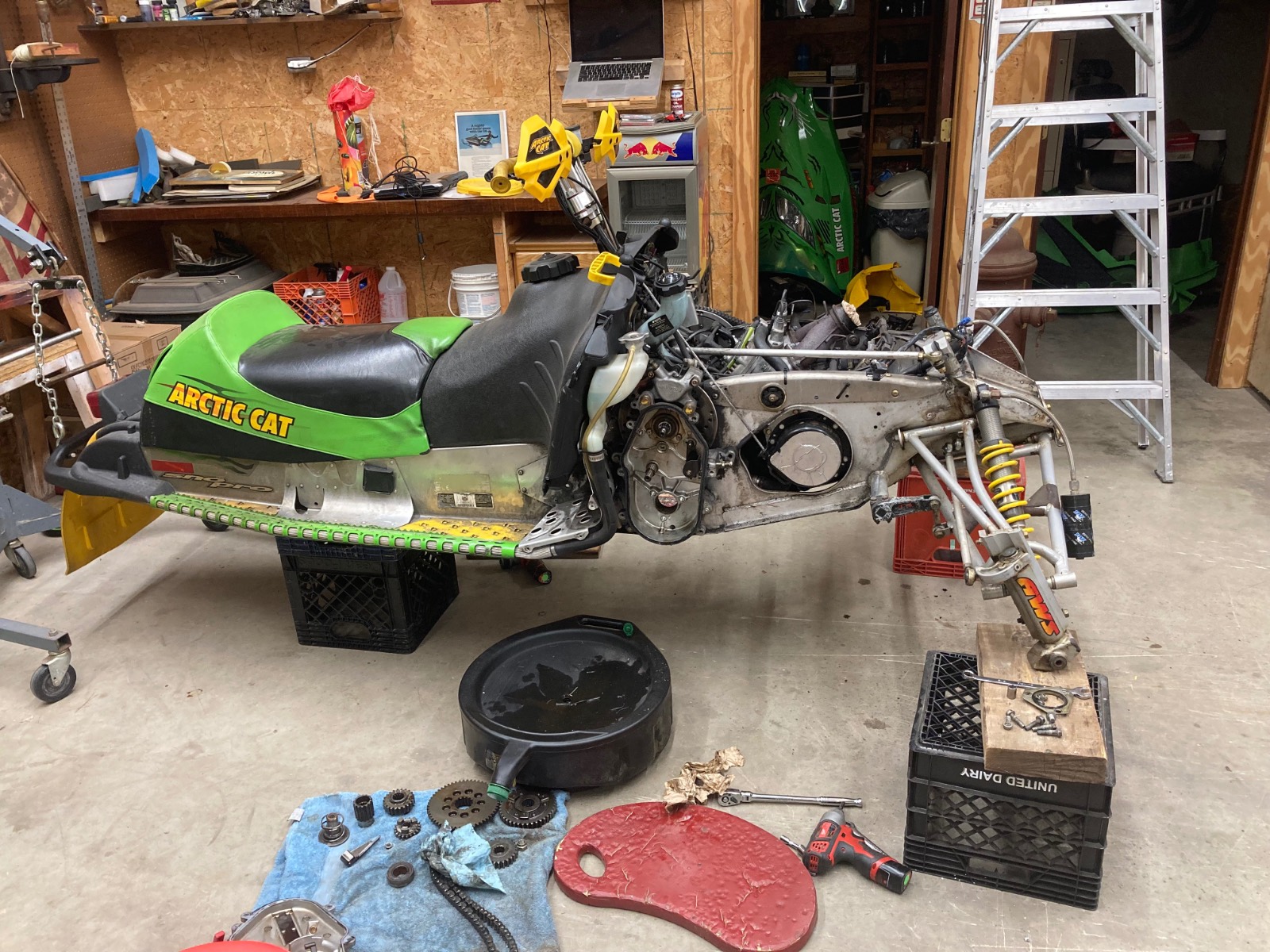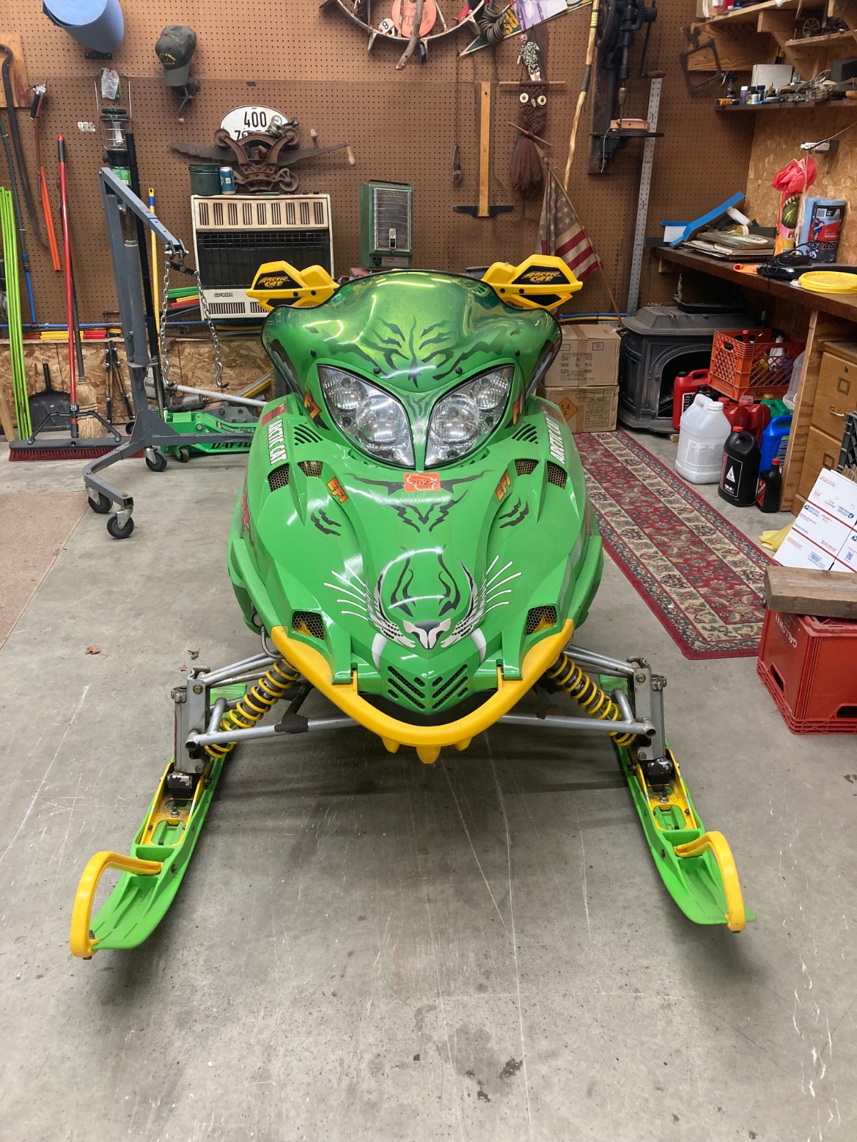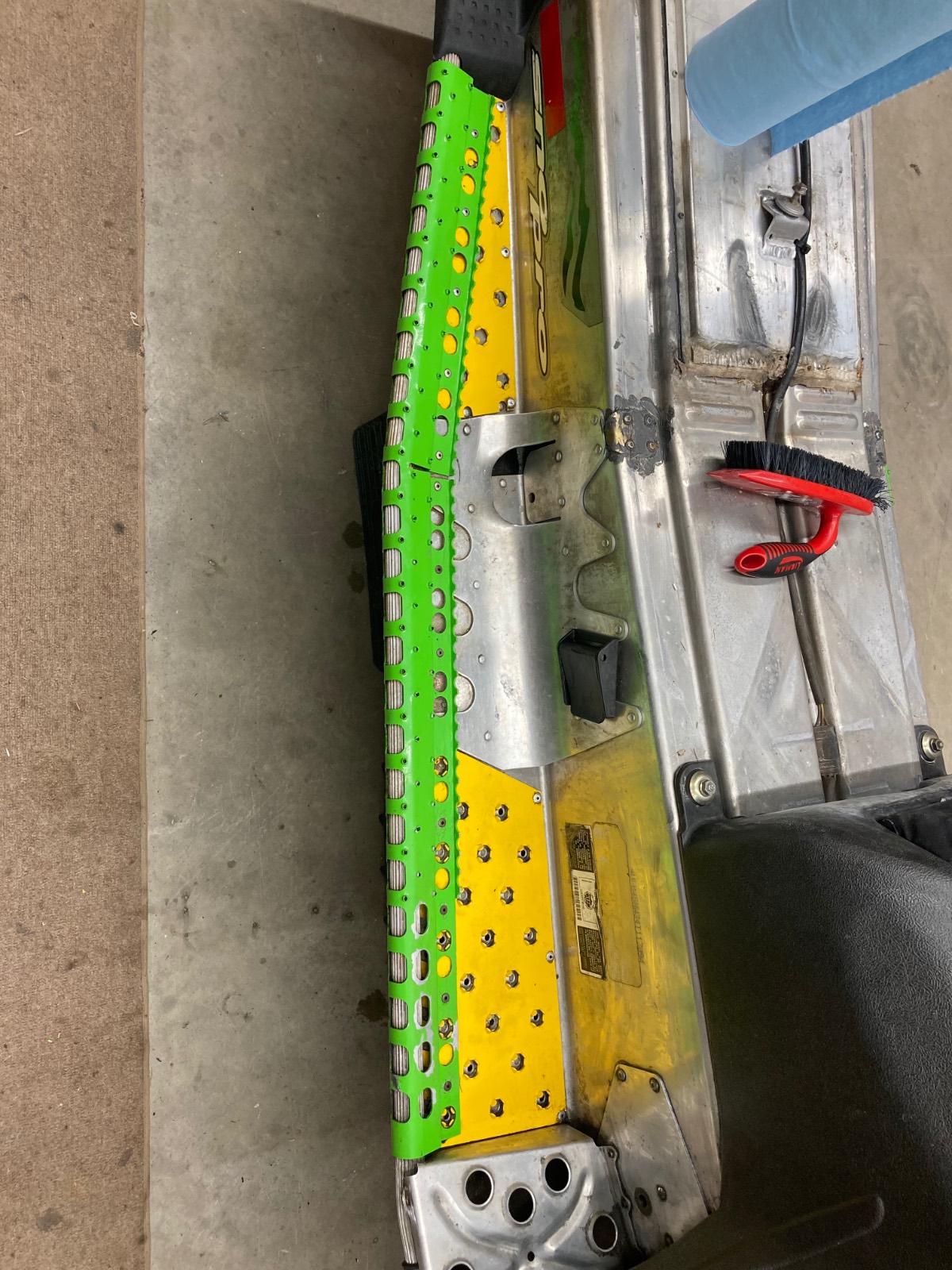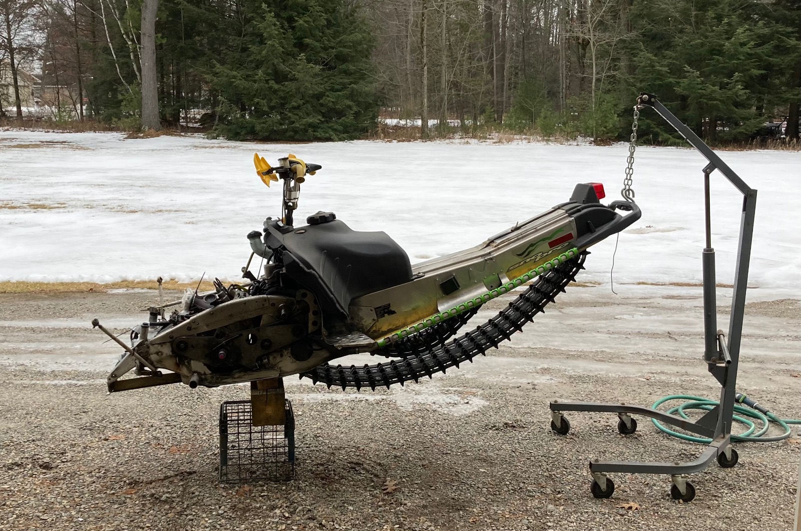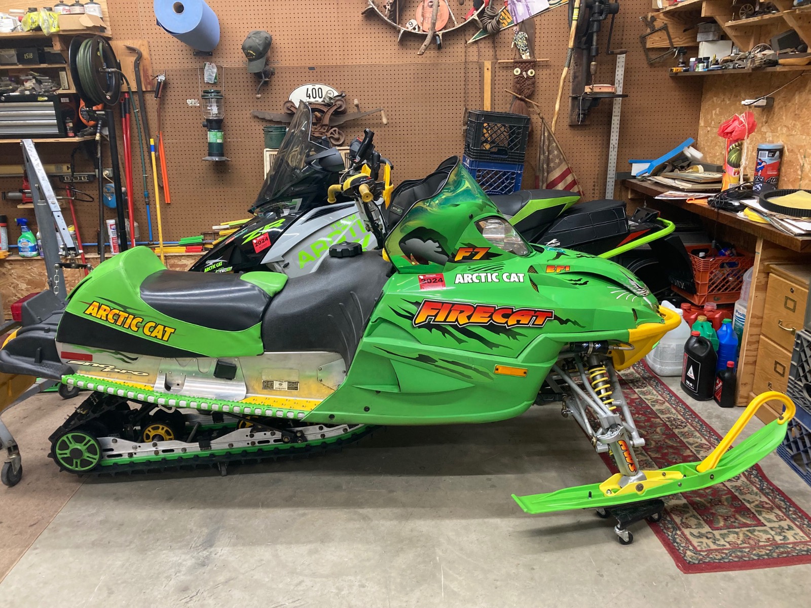 2004 F7R Sno Pro, Green Tiger Edition. Bought new and after 12,000 miles figured it was time for a refresh. Complete skid rebuild, all shocks rebuilt, new speedo side driveshaft bearing. All front suspension components powdercoated. Five cans of foaming engine brite and a ton of scrubbing. Happy with the result and the thing still flat out rips. Might just sell the 2018 ZR8 and run this old girl next year.