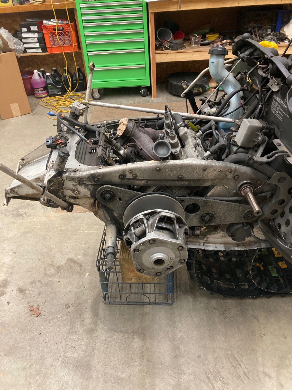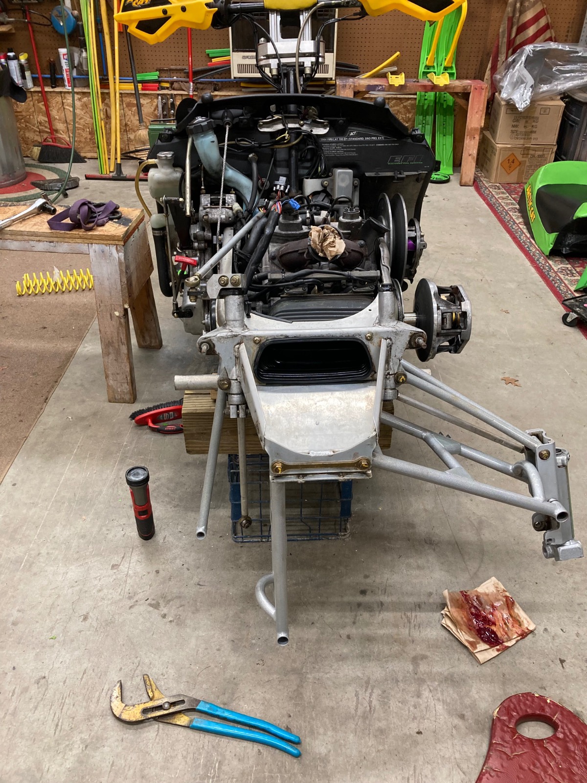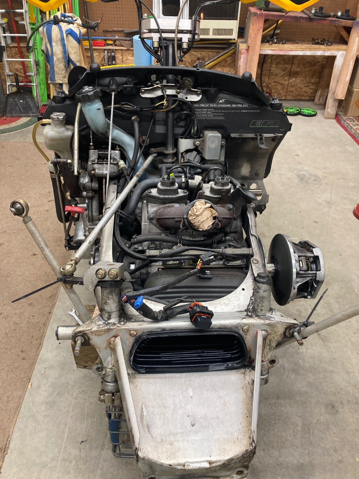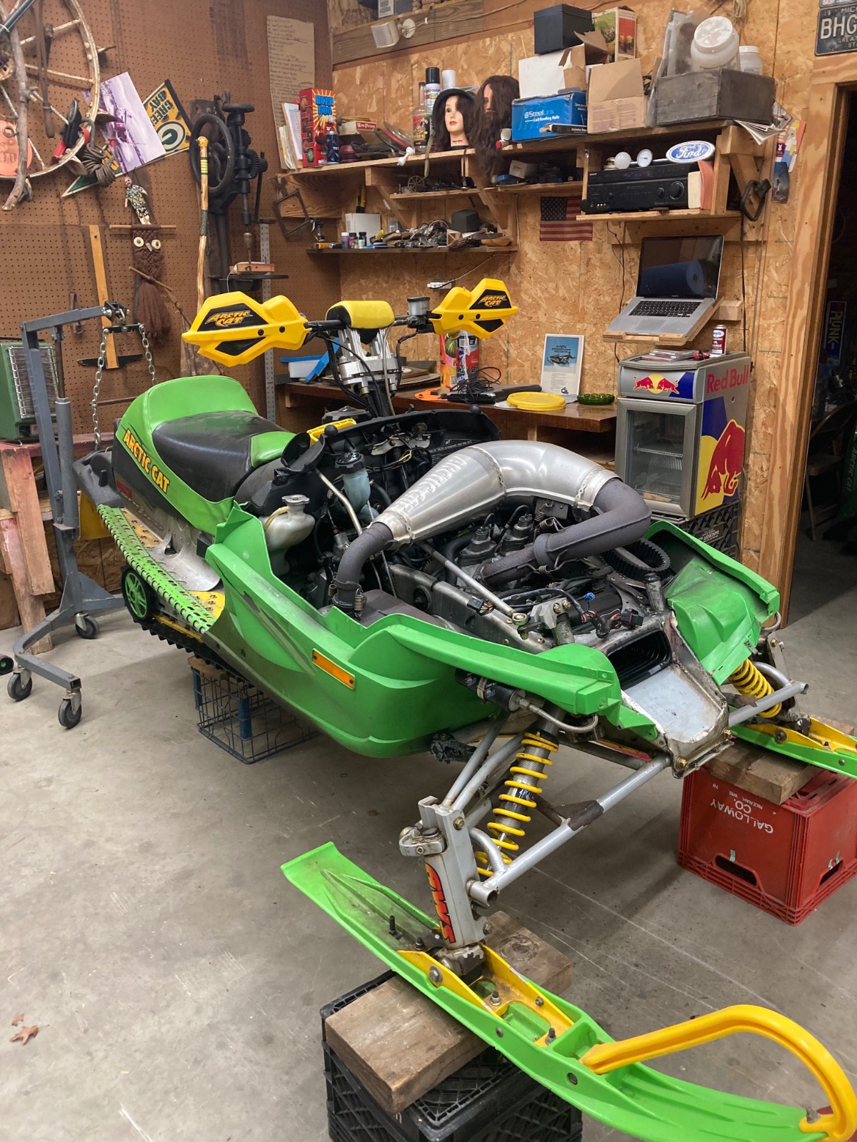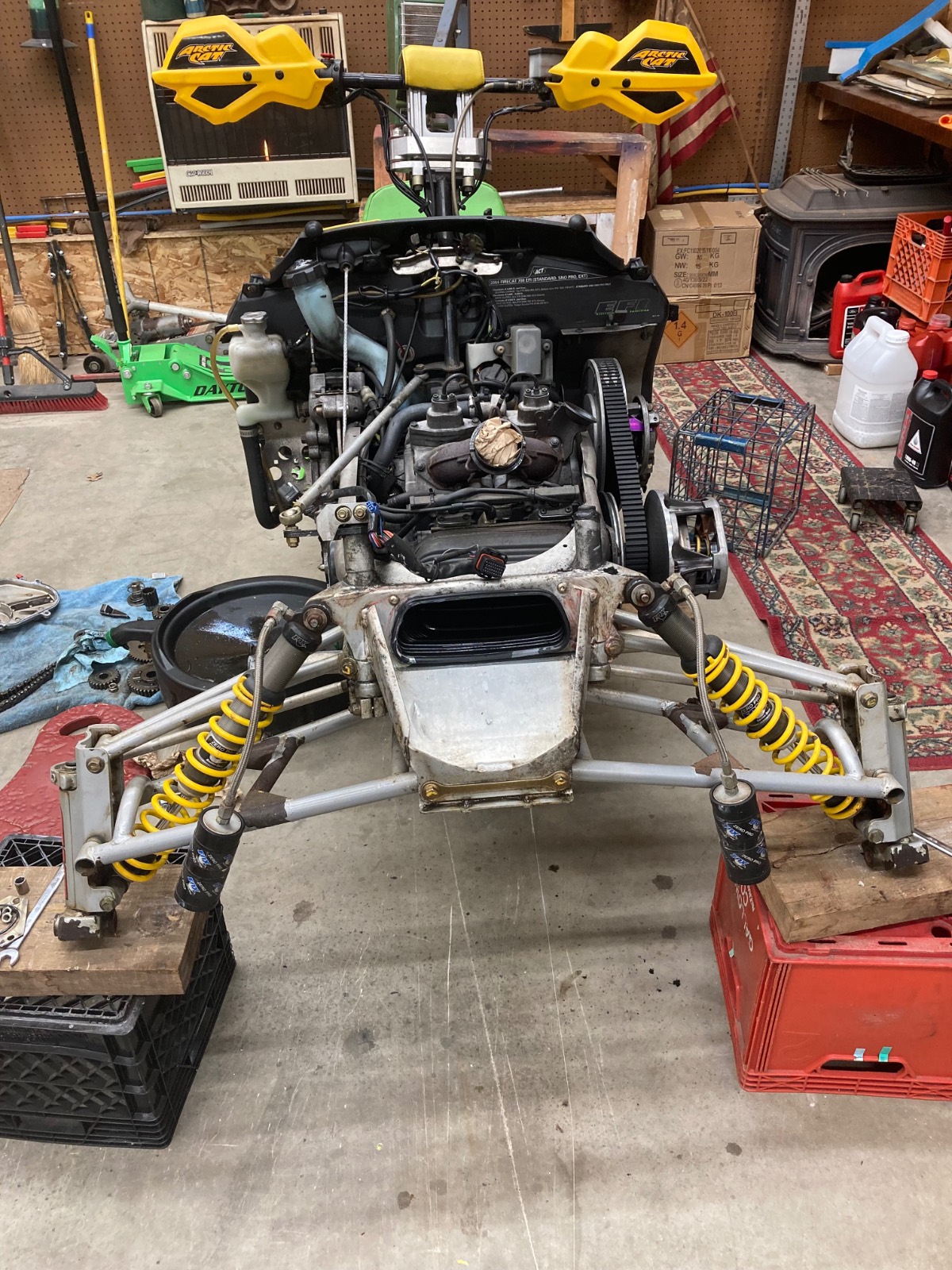 2004 F7R Sno Pro, Green Tiger Edition. Bought new and after 12,000 miles figured it was time for a refresh. Complete skid rebuild, all shocks rebuilt, new speedo side driveshaft bearing. All front suspension components powdercoated. Five cans of foaming engine brite and a ton of scrubbing. Happy with the result and the thing still flat out rips. Might just sell the 2018 ZR8 and run this old girl next year.