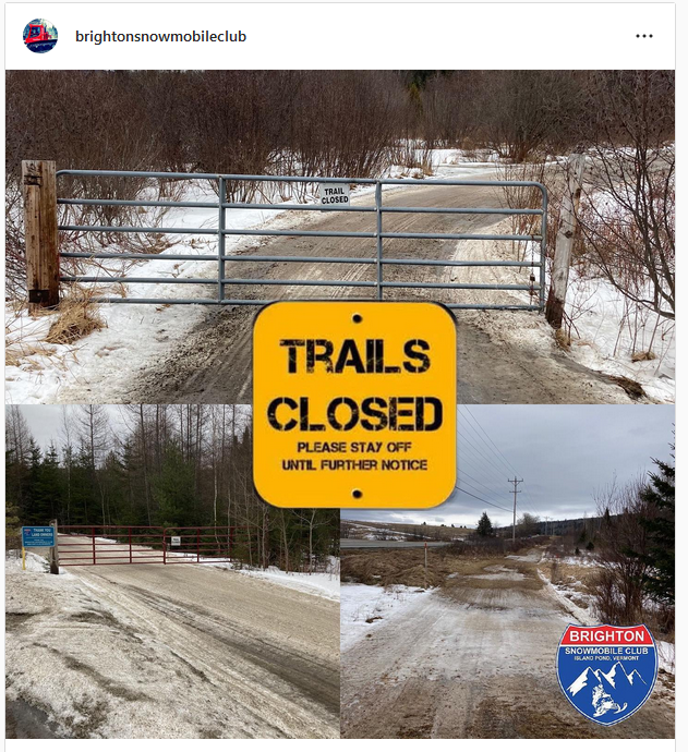 Brighton Snowmobile Club has closed all trails due to the warmup and rain :sad: