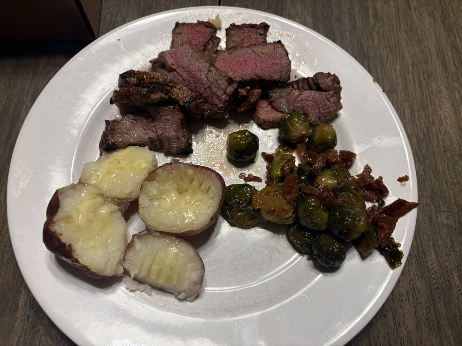 November 10, 2025Nov 10 USA Donating Member Baby reds and tenderloins on the grill, Brussel sprouts with a little bacon cooked in maple syrup and soy… sooooo good