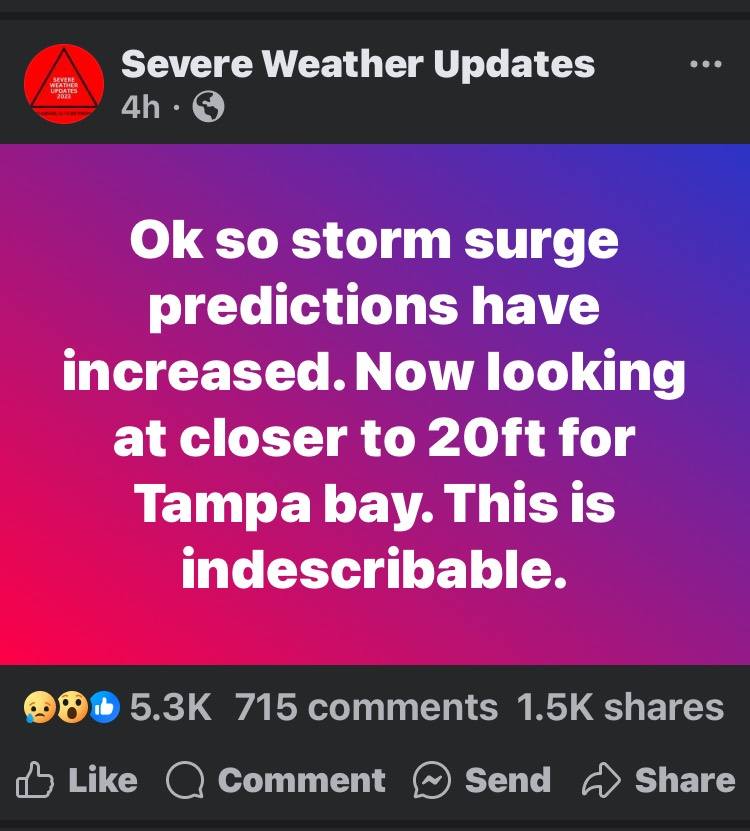 Breaking News: Florida Governor Ron DeSantis with a dire quote: "This is an unsurvivable storm. Please evacuate, or you will die."