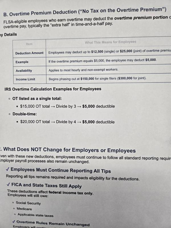 Overtime is for people that actually work and not on a salary. They appreciate the tax break on at least some of it. ... Maybe it's just me but I always tip on takeout and dunkin' donuts etc And I also tip at the local Wawa whenever I get a sub or have something made. I tip our exterminator as well, despite having a monthly contract. I will be sure to tip the UPS guy tremendously as well. Will also be tipping the garbage man and the recycle people- $3 a gallon and $9 a dozen!!!
