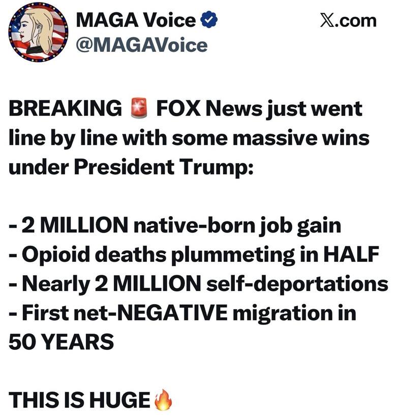 Wow! Phenomenal job GOAT 🐐 👍 This is great news. America is well on its way back Maybe if more illegals self-deported , Ice wouldn't have to round em up.