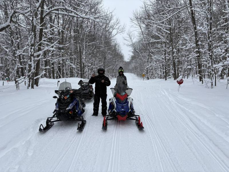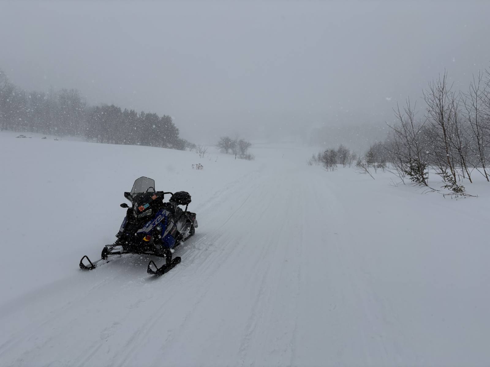 yesterday at the hill was pretty good. snow for most of the time but the sun did come out. we pulled out of my driveway with a flat on the trailer , did a nascar tire change and headed on. the morning trails had frozen bumps under fresh . good traction and cornering . pretty much empty but we did see some groups. a few more in the afternoon. north the trails were beautiful , with good ripping and the sky got brighter. gas and lunch in barnes corners and back through the center of the hill. all amazing . they must have ran the groomer through while we were north because now the south stuff is mint . we left fairly early trying to find a spare, and coming home in to the "blizzard" . thankfully dry roads coming home and no flats. overall a great day , had stronger800 from hcs come with us on the high hp thundercat.