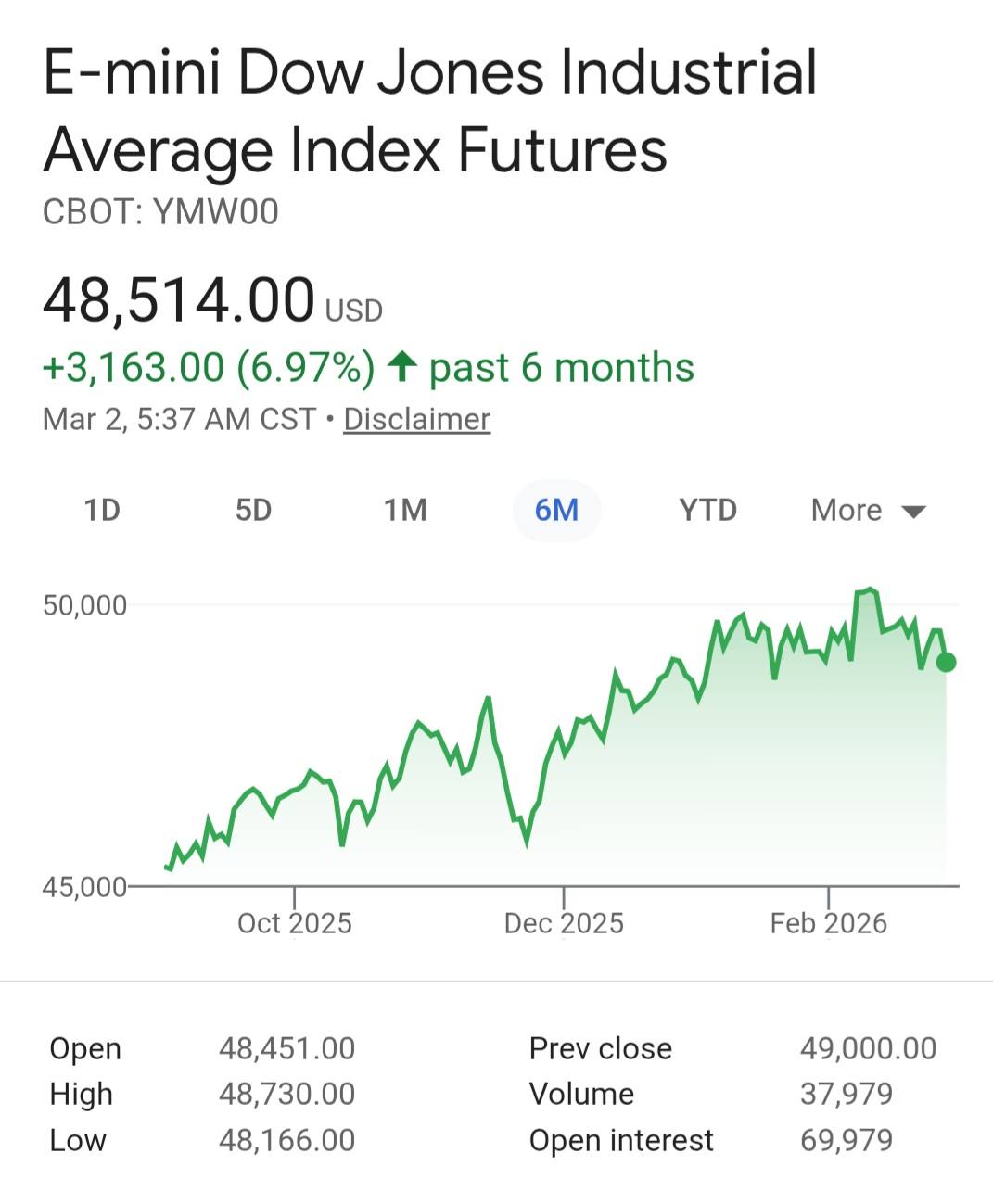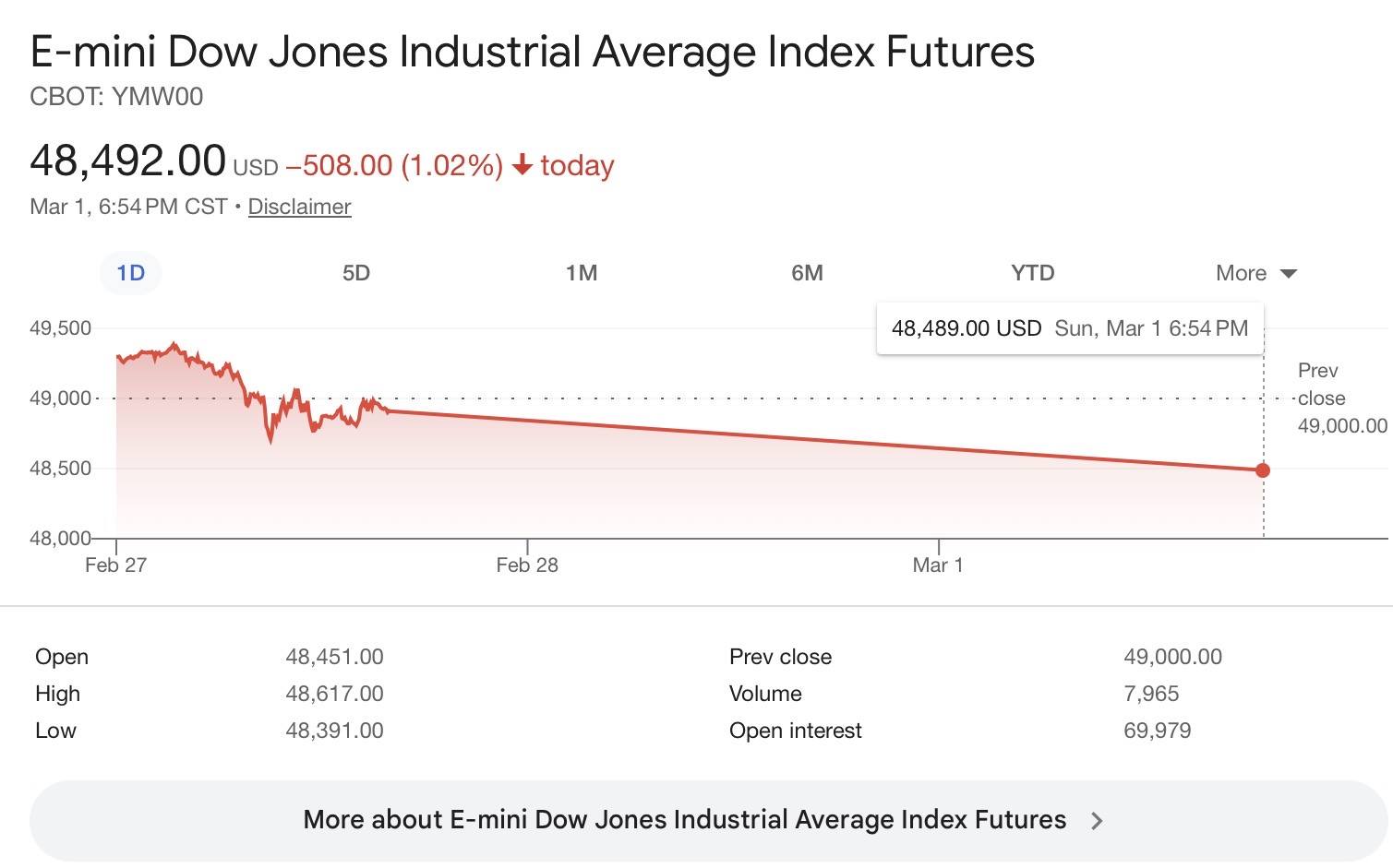 - Dow Futures just now…..