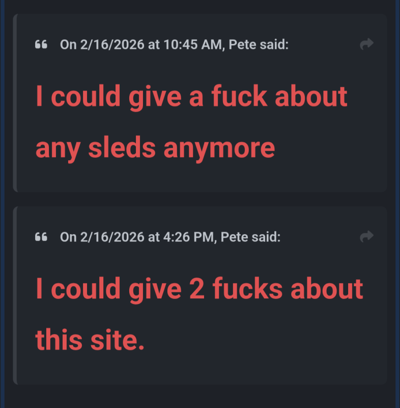 better hope Pete doesn't find out you enjoy riding anything smaller than an 800, or 700, or ... idk something like that? he's just here for the politics I guess...