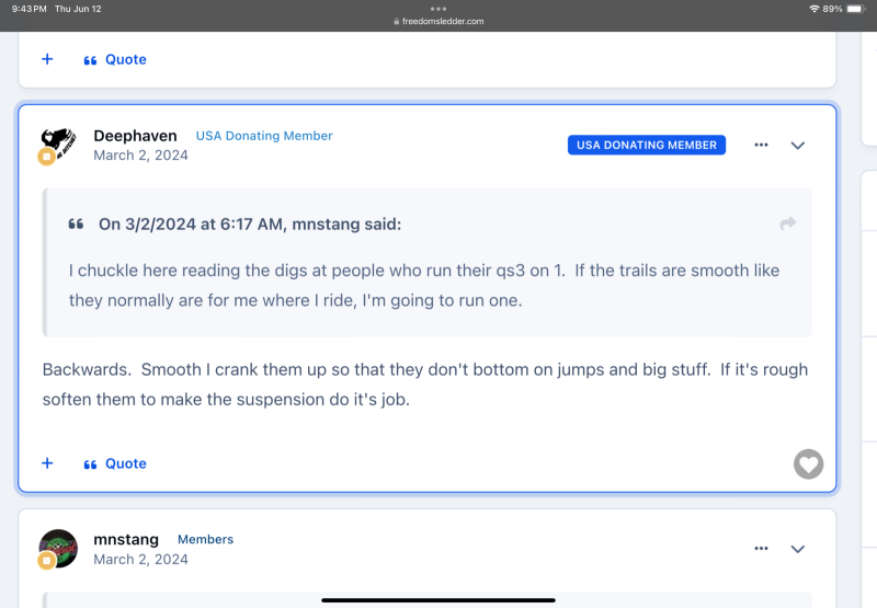 The definition of a pussy is riding around with your clickers full soft and trying to convince people it’s a good set up for bumps. Deepthroater set up for rough trails.