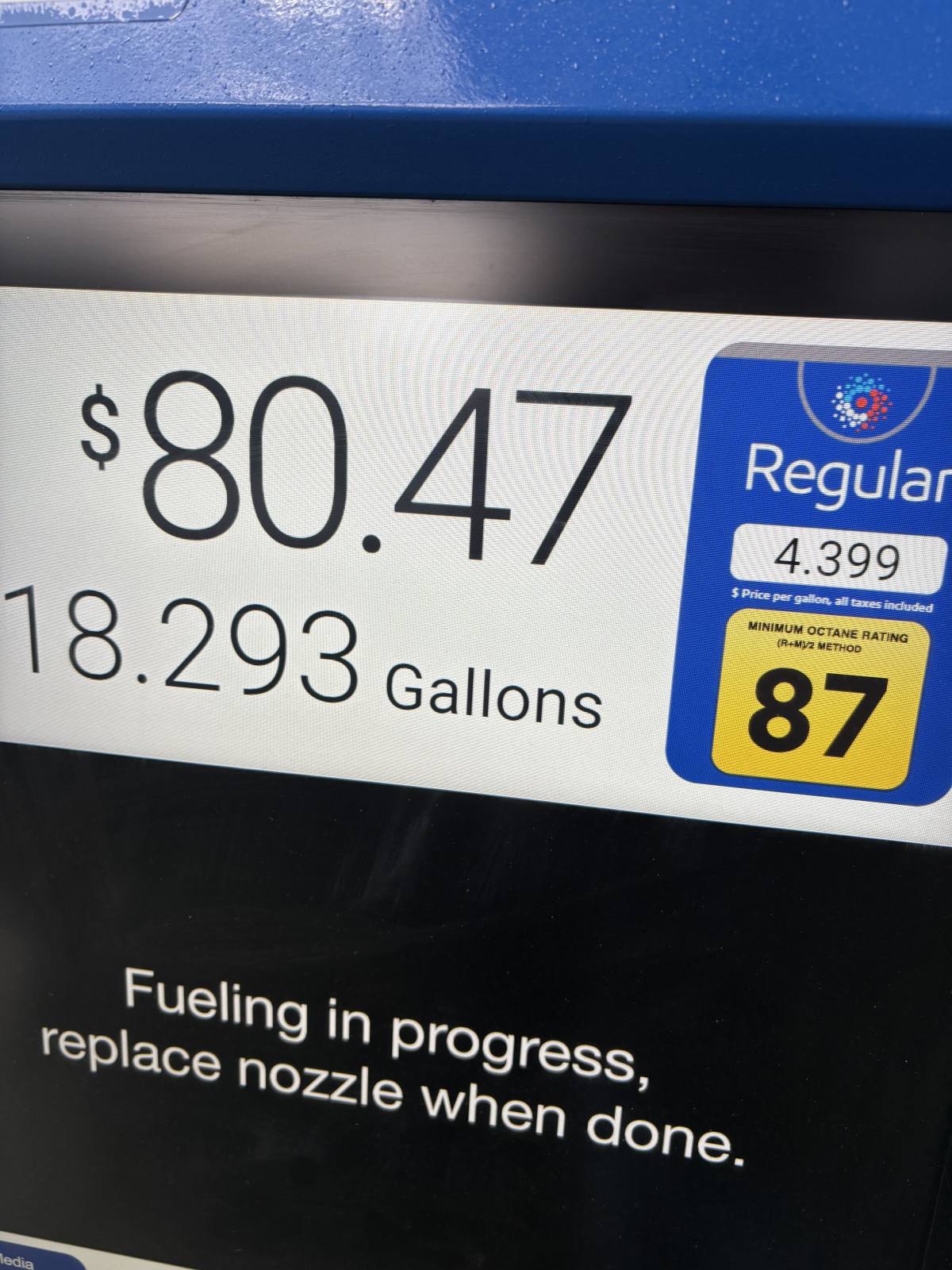 The tainternets tell me the average gas price here is $3.73, which is over a dollar cheaper (@$4.77) then it was in 6/2022.
